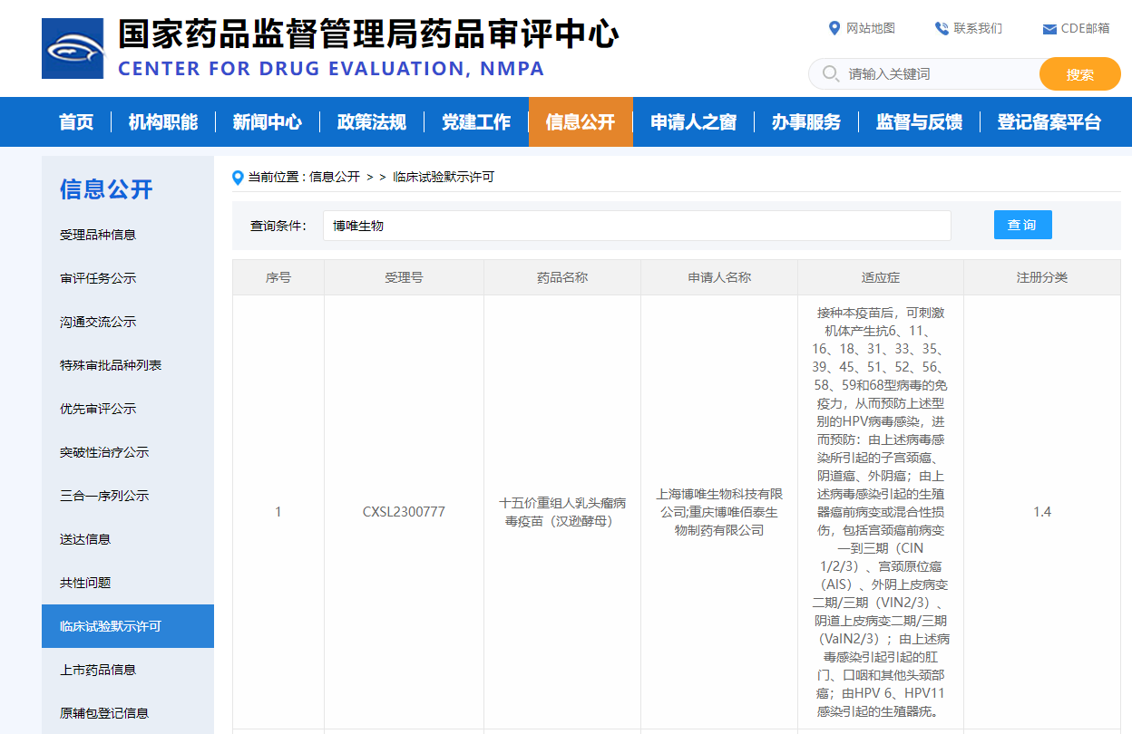 天勤生物助力博唯生物“十五價HPV疫苗(漢遜酵母)”獲臨床批件
